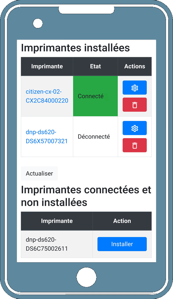 Sélectionnez une photo depuis votre galerie et imprimez! Imprimez aussi depuis votre PC en recherchant l'imprimante sur le réseau!